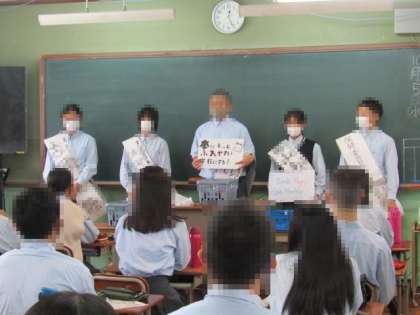 本日10月5日より、生徒会本部役員改選に向けての「選挙活動」がスタートしました。朝の校門での挨拶と、昼食時に3日間かけて全クラスを回ります。教室では候補者が抱負等を述べる際、聞く側もいったん食事の手をとめ、マスク着用でしっかり話を聞いてくれています。ちょっとしたことですが、候補者に対してそのように協力できる旭中生、とても素敵ですね。候補者のみなさんも頑張って下さい!