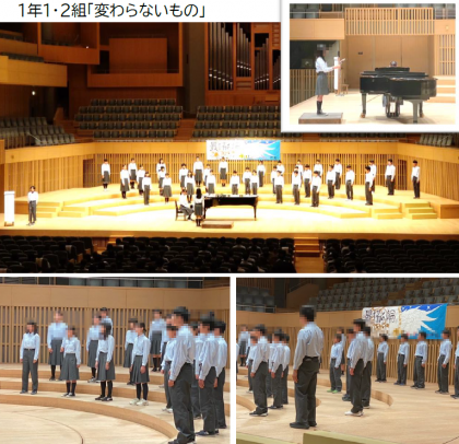 トップを切って1年生の合唱が始まりました。このような大きく立派なホールで歌うのは緊張するかもしれませんね。プレッシャーに負けず1年生らしく元気よく!演奏順は1・2組→4組→3組です。