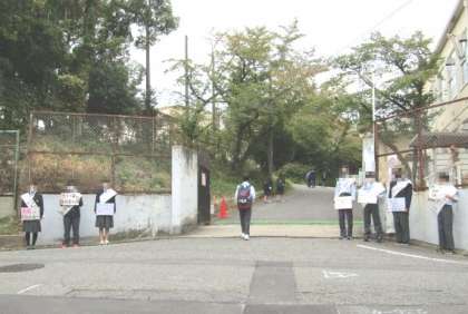 10月12日(水)、今朝も登校時に校門で立候補者のみなさんが、朝の選挙活動を頑張っています!生徒会本部役員選選挙[18日(火)]まで1週間を切り、PR活動にもますます熱が入ってきました!