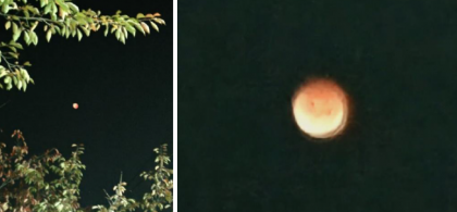 今日11月8日(火)は「皆既月食」。太陽→地球→月が、一直線上に並ぶことで月が「地球の影」に完全に隠され、赤黒く変色された満月が見える現象です。「地球が丸い」ことを証明する現象の1つでもありますね。さらに今回は「天王星食」も同時に見ることができ、皆既月食と惑星食が同時に見られるのは1580年以来、442年ぶりだそうです。時々、雲に邪魔されながらも、何とか旭中の空にもオレンジの月が…。