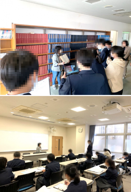 視覚障害者総合福祉施設「京都ライトハウス」での1年生です。インタビューをしながら、しっかりメモをとっています。