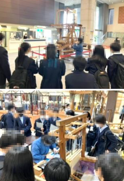 1年生です。御所での昼食タイムの後、「西陣織会館」での見学です。