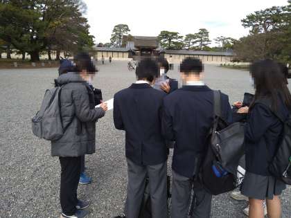 「御所」で先生からのチェックを受ける2年生のグループです。