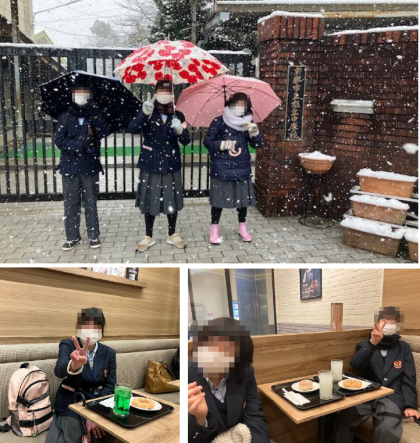 2月21日(火)、1組は「買い物学習」に行きました。数学で学習したお金の計算を用いて、実際に買い物をし、注文したものに対して不足なく支払いができることが目的です。行き帰りは雪が降っていて寒い中ではありましたが、無事目的の「買い物」ができたようで、良かったですね。