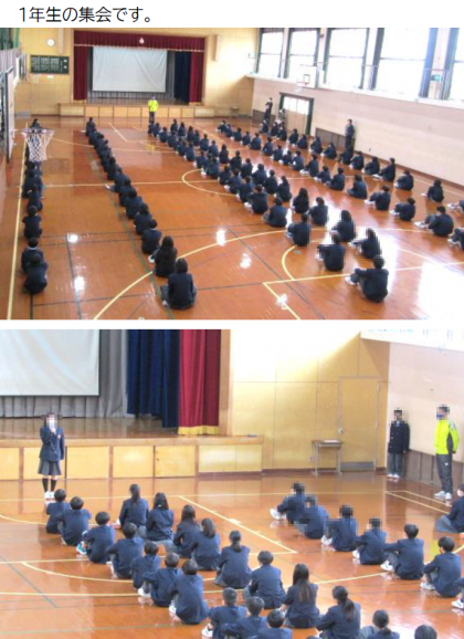 今日3月17日(金)、1年生・2年生それぞれ最後の学年集会を行いました。各クラスからの「振り返り」や学年の先生達からみなさんへ色々な形でのメッセージがありました。