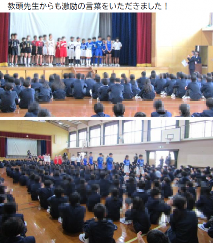 昨日4月19日(水)は、「春体激励会」がありました。全校生徒が集まっての激励会も4年ぶりです。各部の代表者が意気込みを述べ、生徒会の代表と教頭先生から激励の言葉をいただきました。今の1・2年生も様々な制限の中で部活動に励んでいきましたね。ぜひ大会では、これまでの努力の成果を発揮できるよう正々堂々、全力で挑んて下さい!また、応援に行く場合も必ず該当の顧問の先生に確認した上で、旭中生の一員としてのマナーや礼儀を守り、応援のつもりが迷惑をかけることのないようにしましょう!