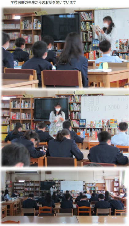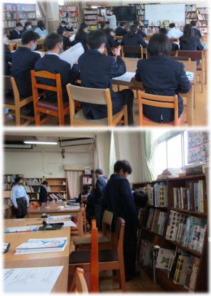 入学してまもなくのことでしたが、新1年生の図書館オリエンテーションがありました。司書の先生から図書館の使い方、マナーのお話、本の並び方の「日本十進分類法」の説明等がありました。
