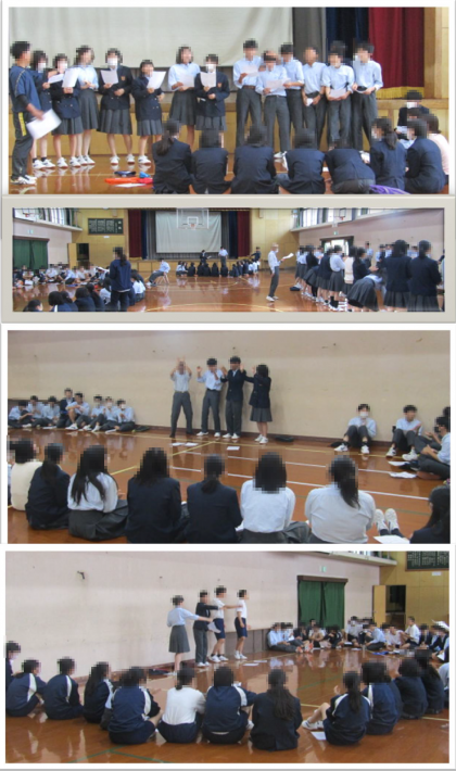 体育祭の練習が着々と進んでいます。今日は体育館で、3年生が応援練習をおこないました。青団、緑団、黄団に分かれ、それぞれ創意工夫をこらした活気のある応援です。こうした3年生にリードしてもらい、1、2年生も含めてみんなで体育祭を盛り上げていきましょう!