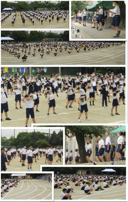 グラウンドに全校生徒がそろって、開会式と準備体操です。