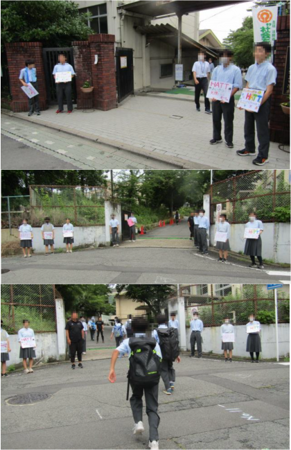 7月14日(金)、生徒会本部による今年度3回目の「HATTあいさつ運動」を行いました。「HATTあいさつ運動」は、毎月第1金曜日に生徒会がHATT(H…鳳徳小、A…旭丘中、T…待鳳小、T…鷹峯小)の小学校とも連携して行なっている活動です。朝から蒸し暑い中、、生徒会本部のみなさんが校門に立ち、元気にあいさつをしてくれました。登校してきたみなさんも、しっかりあいさつを返してくれましたね。今年度になって遅刻をする人が大幅に減りました。それもこうした取組を続けてきた成果ですね。生徒会本部のみなさん、ありがとうございます。