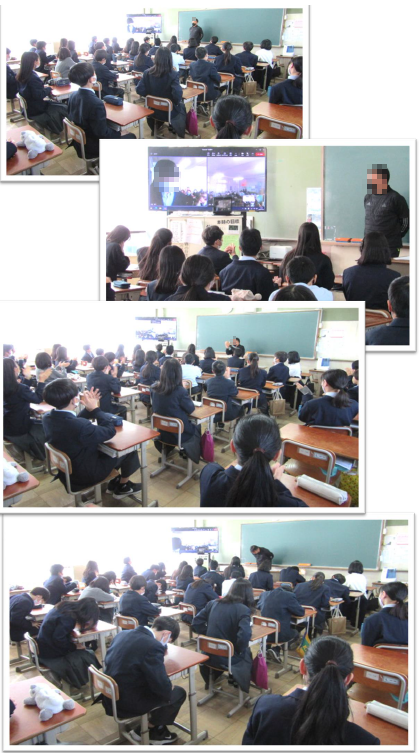 1年生は、インフルエンザの状況にかんがみ、各教室でのリモート集会にしました。