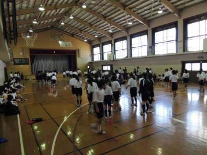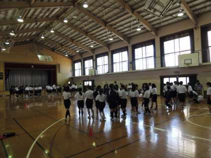 本日の5限に1年生は全員、体育館に集合し、クラス対抗ドッジビー大会が盛大に行われました。みんなクラスのために一生懸命取り組んでいました。その頑張りに感動しました。このクラスの団結を忘れずこれからいいクラス・居心地のいいクラスを作っていってください!優勝クラスは5組、準優勝クラスは2組でした。