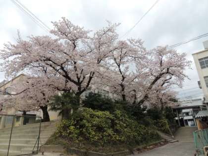 昨日は最後の? お花見で、京都はどこもすごい人出でした。写真は今日の朝の旭丘中学校の桜の様子です。いよいよ散り始めています。