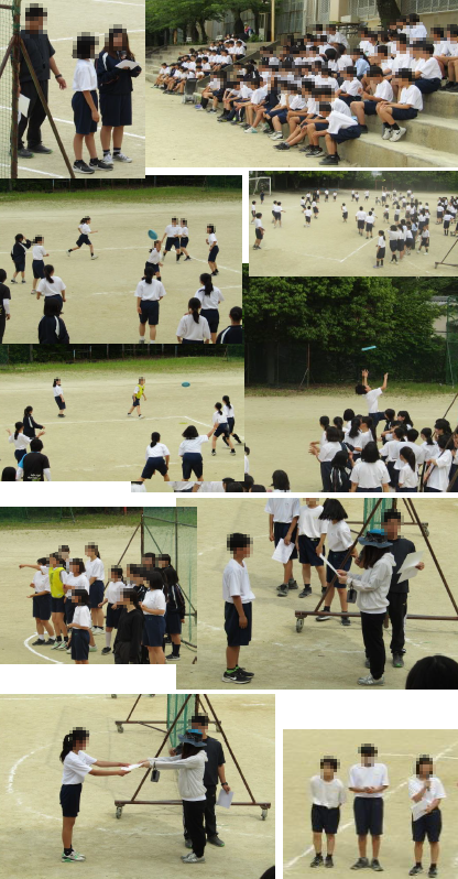 グラウンドに出て、男女別クラス対抗で、ドッヂビー大会です。