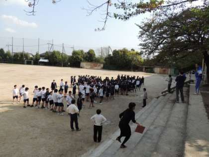 委員会活動と平行して、委員会に属していない各部の部員が「それぞれの活動場所をきれいにしよう」という目的で清掃活動が行われました。全員、一旦グラウンドに集合して注意をうけた後、それぞれの清掃場所に移動して熱心に活動しました。
