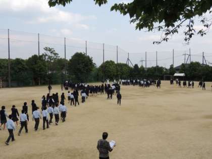 本日5限に不審者の進入による避難訓練を実施した。実際に犯人役の先生に登場してもらい訓練を行った。まだまだ、課題は多いと思いますが、このような訓練をしっかりやっていきたいと思います。