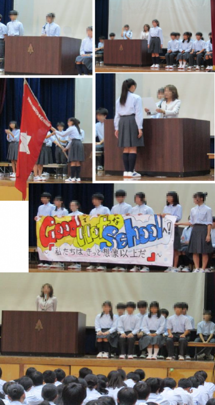 文化祭のプログラムを終えた後、生徒会本部役員の認証式を行いました。