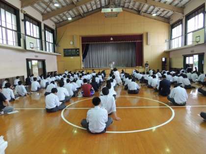 定期テストも終わり、次のステップに向けての話や進路についての話などがありました。どうしても宿泊学習やテストが終わるとホッとしてしまいがちです。ここでもう一度、自分自身を見つめなおし、しっかりした学校生活や学習ができるようにがんばってください!!