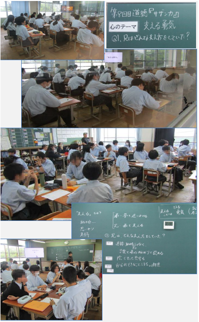 3年生の道徳では、SEKAI NO OWARI「サザンカ」を題材に、「支える勇気」について考えました。