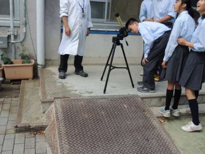 太陽の手前を金星が横切る珍しい天体現象「金星の太陽面通過」が、6日にかけ、日本全国で観察された。旭丘中学校でも、職員室前に理科の先生が望遠鏡を設置し、生徒たちは午前中の休み時間ごとに観測をしていました。金環日食同様、興味を持つことが大事です。これからもいろいろなことに興味を持ってほしいものです。