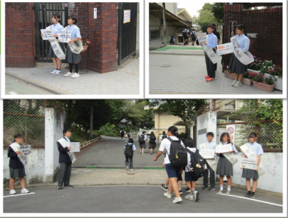 登校してくるみなさんに立候補者が挨拶を行っています。