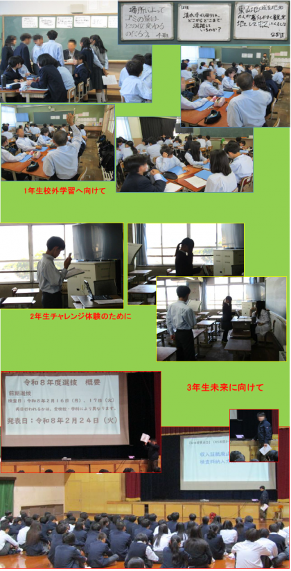 3年生は、卒業後の進路決定に向けてのお話を、みんなで聞きました。