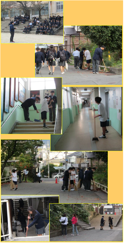 PTA本部、保護者の方にも協力していただき、落ち葉が増えてきた校内を清掃しました。