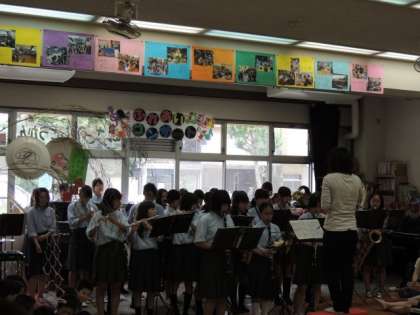 7日の午後、紫野児童館のふれあいコンサートに招待され、素晴らしい演奏を披露してくれました。来月には吹奏楽コンクールもあります。吹奏楽部がんばれ!!