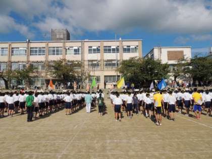 いよいよ体育の部が始まりました。開会式は吹奏楽部の演奏のもと、団長の宣誓でしめくくりました。