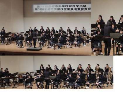4日(日)に右京ふれあい文化会館で京都市中学校総合文化祭の発表がありました。本校からも吹奏楽部が発表してくれました。「ミッション:インポッシブルのテーマ」「愛でした」「ギブミー ファイブ!」をがんばって演奏してくれました。