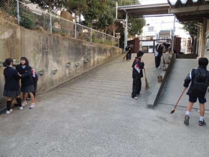 本日、代議・専門委員会の時に各部活動による清掃活動が行われました。寒い中、活動場所や校舎周りを中心に清掃活動してくれました。