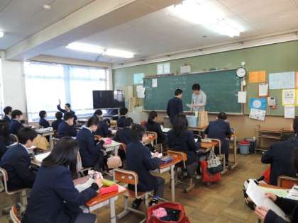本日、先週に学級閉鎖を行った2年3組で回復授業を行った。7限設定し、本日は英語の授業であった。みんな、がんばって活動していた。