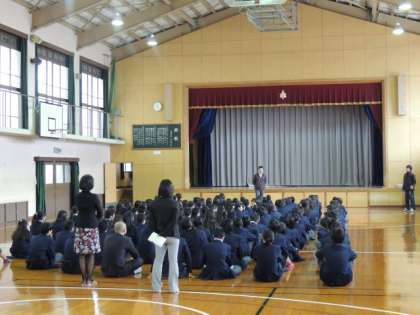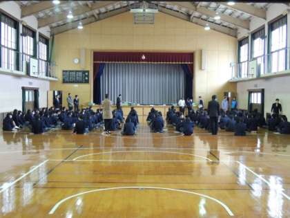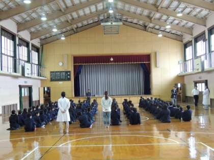 本日、全学年で第1回目の学年集会が行われました。新しく来られた先生方の紹介や今年1年間の学年の目標などの紹介がありました。どの学年もきっちりした態度で聞いてくれました。