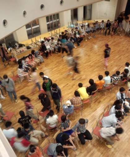 夕食後の学年レクレーションの様子です。盛り上がりMAXでした。