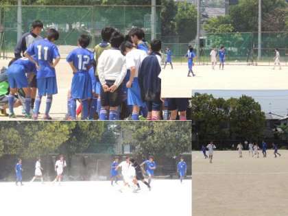 5月3、4,5,6日にサッカー競技が行われました。2回戦は対東山中戦で、3−0で快勝しました。3回戦は対梅津中で、2−0で快勝しました。4回戦は双ケ丘中と対戦しました。一進一退の攻防が続きましたが、終了間際にダメ押しのゴールで4−2で快勝しました。準々決勝は強豪桂中と対戦しました。前半を0−0で折り返し、後半は先制されるが、すぐに追いつき、終了間際に1点を取られ1−2で惜敗しました。しかしながら堂々のベスト8でした。