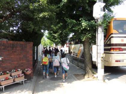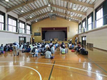 本日、1年生は校外学習で「友愛の丘」に行きます。全員、体育館に集合し、バスで「友愛の丘」に向けて出発しました。たくさんのいい思い出をつくってほしいと思います。