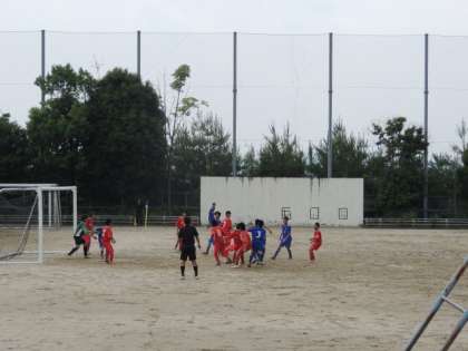 14日(日)に大枝中学校において2回戦が行われました。対戦相手は小栗栖中学校でした。前半は勢いよく攻めましたが、相手のゴールキーパーの好セーブやポストに当たるなどでなかなか得点することができませんでした。しかし、1点を先行すると、後半も加点し4−0で快勝しました。この調子で、3回戦以降もがんばってください。