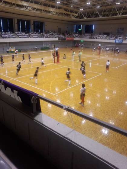近畿大会第1日目の予選リーグ第1試合・対日枝中に2−0(25−16、25−23)で勝利することができました。