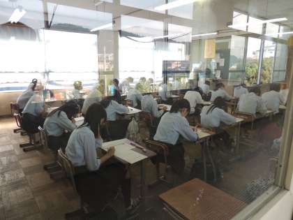 本日、午前中に英検が校内で行われました。およそ67名ほどが受験しました。みんな一生懸命、問題に取り組んでいました。