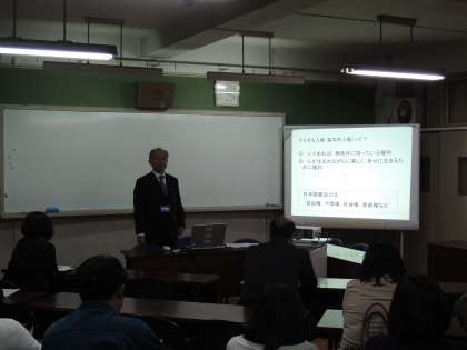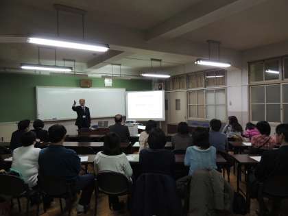5日(木)午後7時から本校会議室で旭丘地域生徒指導連絡協議会主催の「旭丘人権フォーラム」が開催されました。「家族で深めよう!〜人権〜」という題目で、京都市教育委員会学校指導課の首席指導主事の先生に講師をしていただき、人権問題をさまざまな側面から、やさしくお話をしていただきました。有意義な時間を過ごすことが出来ました。