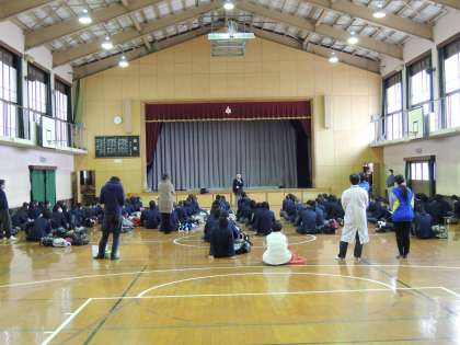 いよいよ来週の月曜日から京阪神の私学入試が始まります。本日6限に10日から受験する3年生が体育館に全員集合して事前指導が行われました。校長先生からの激励の言葉そして進路指導主事の先生から入試に向けての注意等の説明がありました。今日は本当に寒い日でした。来週からの受験で体調だけには十分注意してください。教職員一同、みんなの健闘を心から願っています。がんばれ旭中生!!