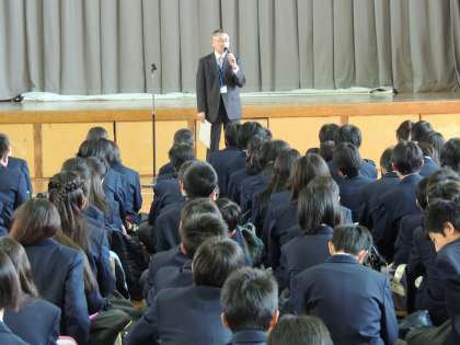着任式の後、平成26年度始業式を行いました。学校長から「智・徳・体を大切に!」という言葉をいただきました。それぞれ、新しいクラスで精一杯がんばって、担任とともに学年一、いや学校一のクラスをつくってください!期待しています。