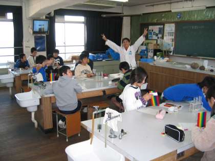 旭中区域の3小学校(待つ鳳、鳳徳、鷹峯)の子どもたちが、1日体験入学をしました。午後から授業と部活動の体験をし、普段とは違う校舎や机で、中学校の先生による楽しい授業を受けました。授業の後は、中学校の先輩から校舎案内と部活動体験をします。