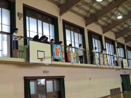 明日5,6限に予定されている「新入生を迎える会」の準備およびリハーサルが放課後に行われました。生徒会の本部役員中心にがんばって準備してくれました。明日は立派な迎える会にしてほしいとい思います。