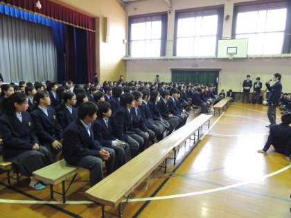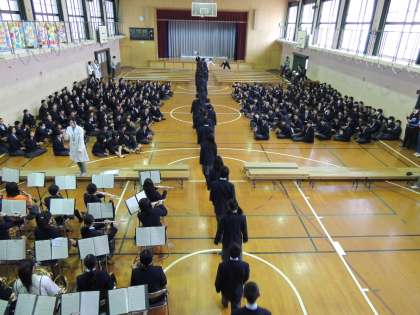 本日、5・6限に体育館で「新入生を迎える会」が盛大に開催されました。新入生の入場から始まり、部活動紹介・2,3年生からの出し物・生徒会本部からの出し物・新入生へのプレゼント最後に「新入生からの誓いの言葉」など盛りだくさんの内容でした。いよいよ、これで全校生徒434名で本格的にスタートしました。