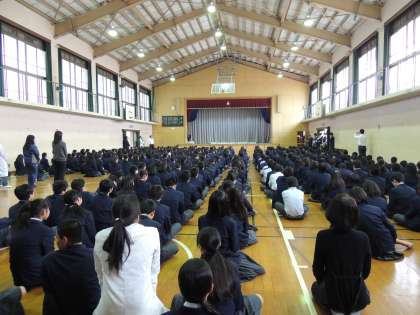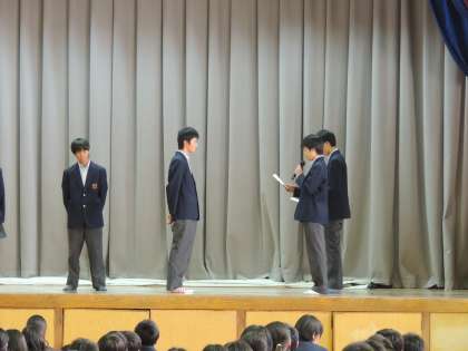 本日6限に体育館で前期の学級委員の認証式が行われました。各クラスで選出された代議員、生活委員、文芸委員、美化委員、保健委員に認証書が手渡され、校長先生から激励の言葉もありました。委員の人たちは、クラスの代表としてがんばってください。期待しています。