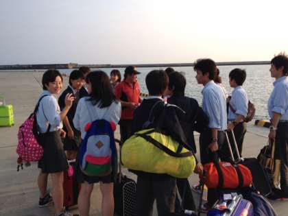 ほぼ、予定通り17時30分に伊江島に全員元気に到着しました。その後、入村式などを行いました。そして、それぞれのホストファミリーと一緒に各家庭に移動しています。(本日の通信はこれで終了させていただきます。また明日も発信していきます。)