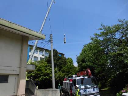 4月上旬から始まっている「空調機設置」工事は順調に進んでいます。6月中旬には完成予定です。今年の夏からは、念願の新しい空調機が作動します。