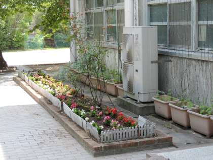 昨日、本日と用務員さんが中心になってプランタや花壇にベゴニアを植えていただきました。本当にきれいになりました。それと「緑のカーテン」として今年度はゴーヤを植えました。
