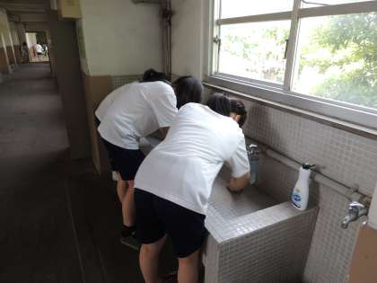 本日、職場体験が定休日等の理由で出勤しなくてよい生徒は2・3限目に登校して、ボランティア活動をしてくれました。クロスの張り替えや洗面所の掃除など2時間、一生懸命取り組んでくれました。明日からはそれぞれの職場でがんばってください!